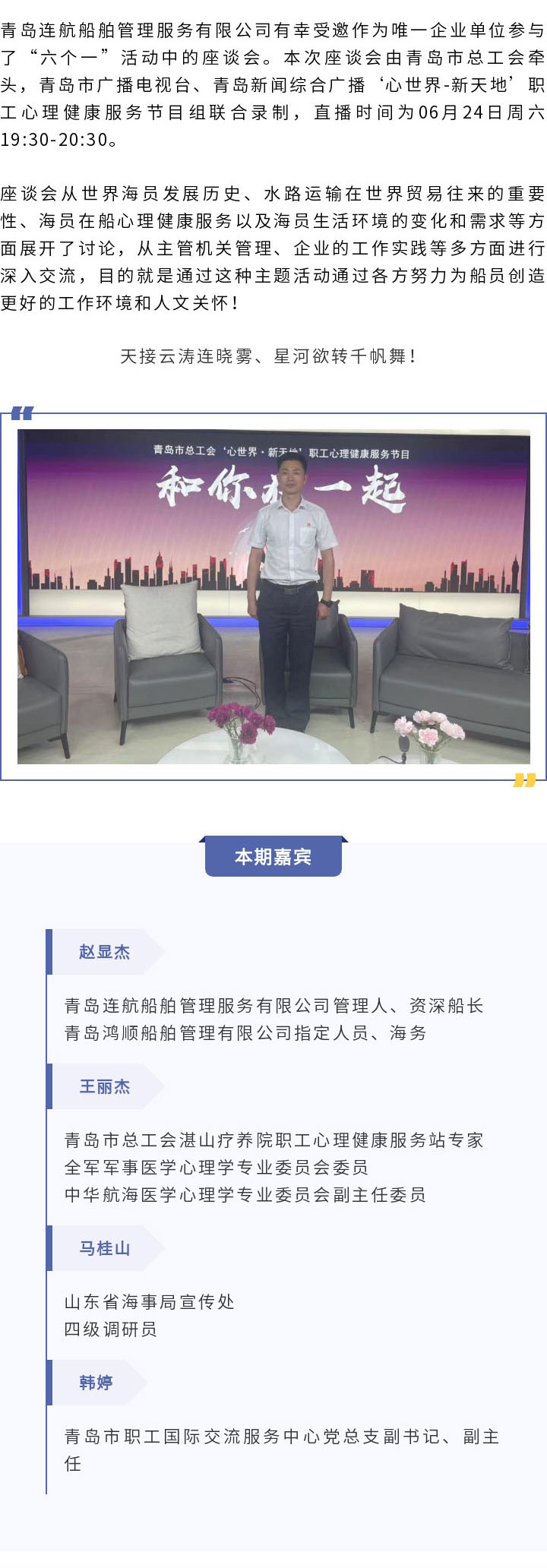 青島連航積極參與第十三個“世界海員日”特別節(jié)目